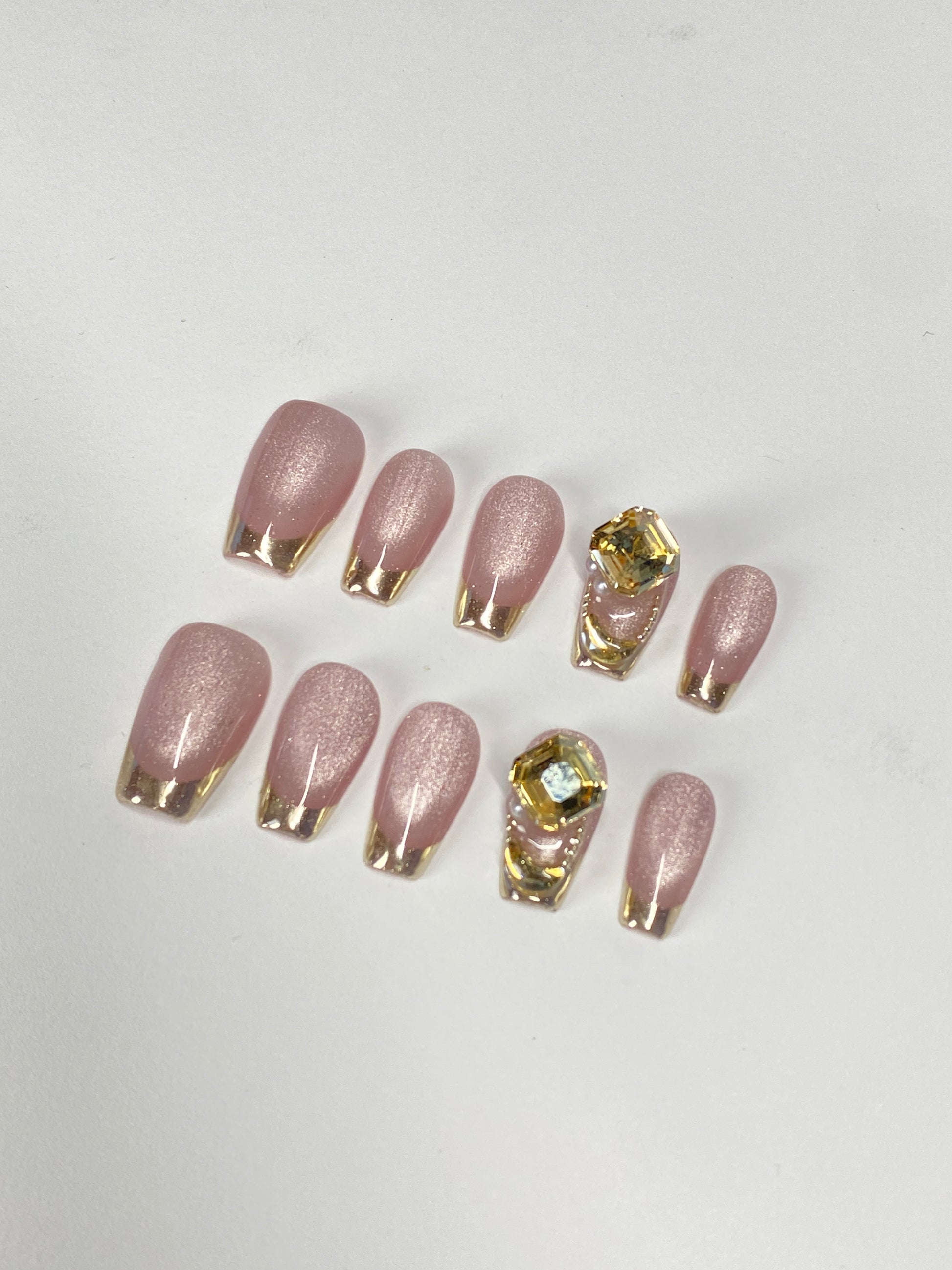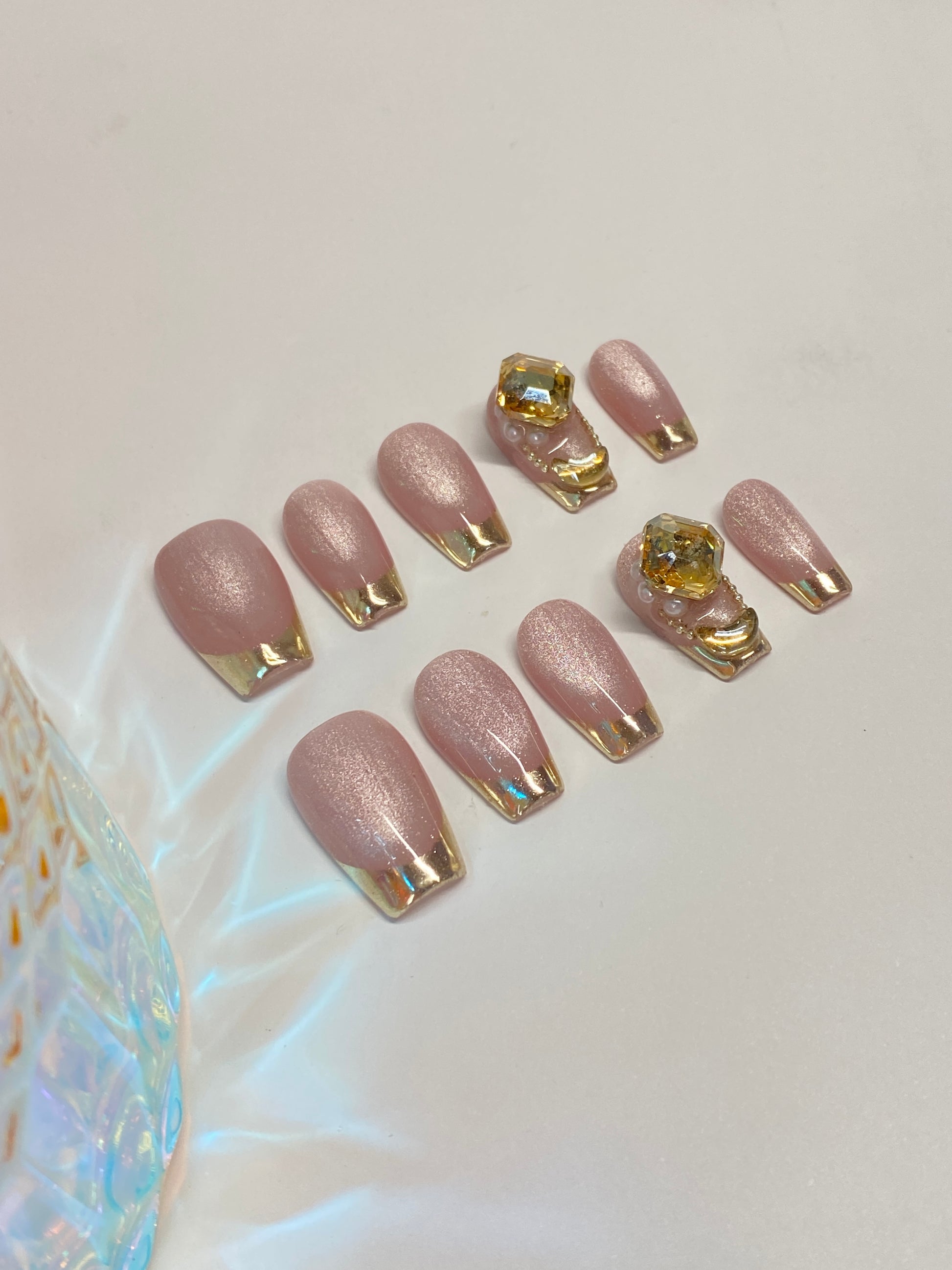 - Finish: Glossy, Cat-eye French tip, Gem